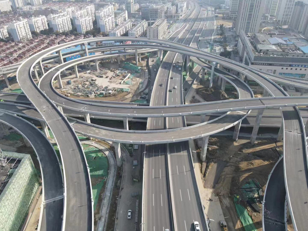潤揚(yáng)路快速化改造(潤揚(yáng)路-江陽路互通立交)工程為五層渦輪型全互通立交,是揚(yáng)州市快速路網(wǎng)重大節(jié)點(diǎn)項目。工程主線高架橋北起百吉巷,南至牧羊路,共15聯(lián)48跨,全長1.52公里;8條互通匝道共58聯(lián)162跨,全長5.04公里。工程橋梁瀝青攤鋪面積總計達(dá)9.4萬平方米。