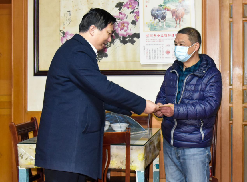 1月25日上午,集團(tuán)黨委書(shū)記、董事長(zhǎng)葉善祥帶隊(duì)先后來(lái)到因病致困的兩名揚(yáng)州中燃公司職工家中慰問(wèn),親切詢(xún)問(wèn)了他們的身體狀況,詳細(xì)了解其家庭生活和醫(yī)療情況,鼓勵(lì)他們要以積極樂(lè)觀的態(tài)度面對(duì)生活,堅(jiān)定信心走出困境。同時(shí)叮囑揚(yáng)州中燃公司負(fù)責(zé)人,要給予困難職工們更多的關(guān)心關(guān)愛(ài),及時(shí)幫助他們解決實(shí)際問(wèn)題。