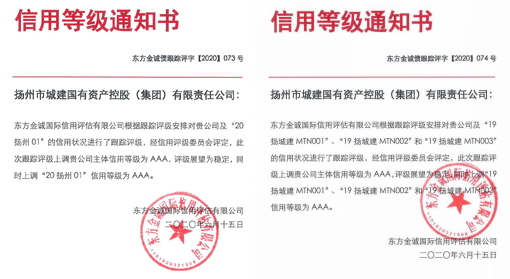 城控集團主體信用等級提升至AAA;成功發(fā)行3億美元境外債;發(fā)行揚州市首單“疫情防控債”;公用控股集團主體信用等級評定為AA。
