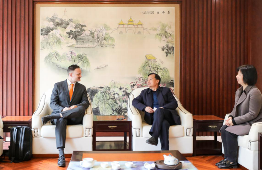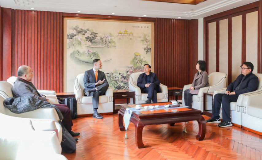 為推進(jìn)揚(yáng)州與布雷達(dá)兩市水務(wù)合作項(xiàng)目,3月3日,荷蘭貿(mào)易促進(jìn)委員會(huì)南京代表處首席代表理查德先生、副代表何霖先生一行拜訪市城控集團(tuán),市城控集團(tuán)黨委書記、董事長葉善祥,副總經(jīng)理周平與理查德先生一行進(jìn)行了親切友好的會(huì)談和交流。市外辦副主任徐靜、城控集團(tuán)相關(guān)子公司負(fù)責(zé)人參加了座談。