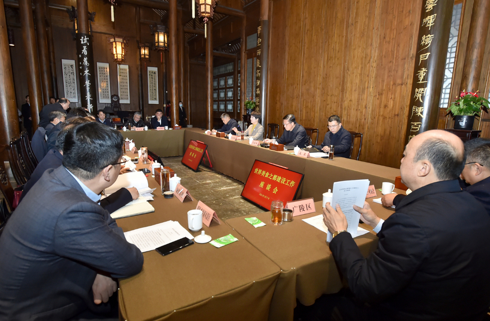 隨后,張寶娟在盧氏古宅慶云堂主持召開世界美食之都建設(shè)工作座談會(huì),葉善祥董事長(zhǎng)匯報(bào)了康山鹽商文化園目前的運(yùn)營(yíng)情況,以及城控集團(tuán)在世界美食之都建設(shè)中所做的工作。