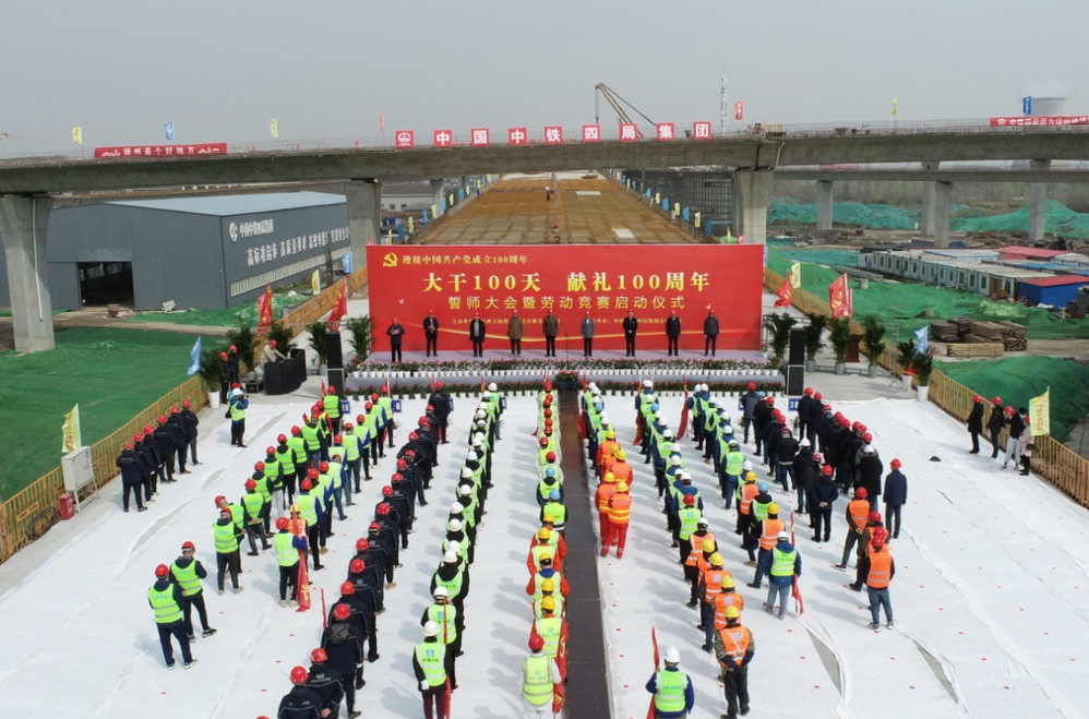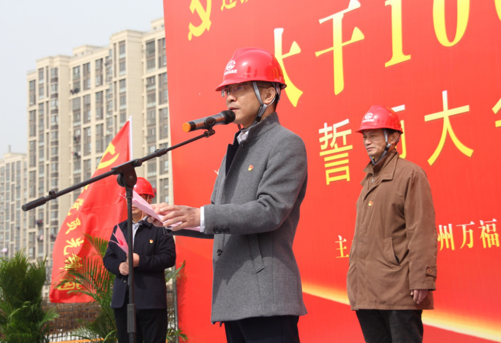 “大干100天,獻(xiàn)禮100周年”勞動(dòng)競(jìng)賽將以建設(shè)管理為主線,以質(zhì)量創(chuàng)優(yōu)為核心,以安全生產(chǎn)為重點(diǎn),以確保工期為目標(biāo),以創(chuàng)新創(chuàng)效為動(dòng)力,以項(xiàng)目黨建為引領(lǐng),在確保施工安全和工程質(zhì)量的前提下,主要圍繞“安全生產(chǎn)、工程質(zhì)量、工程管理、創(chuàng)新創(chuàng)效、廉潔自律、項(xiàng)目文化及疫情防控七個(gè)方面開(kāi)展?;顒?dòng)中,各參建單位進(jìn)行了莊嚴(yán)的宣誓,參加活動(dòng)的領(lǐng)導(dǎo)為“黨員先鋒隊(duì)”“青年突擊隊(duì)”進(jìn)行了授旗,萬(wàn)福公司及參賽單位負(fù)責(zé)人作了表態(tài)發(fā)言,市總工會(huì)勞經(jīng)部部長(zhǎng)賀光明、城控集團(tuán)黨委副書(shū)記徐飛在活動(dòng)中作了動(dòng)員講話。