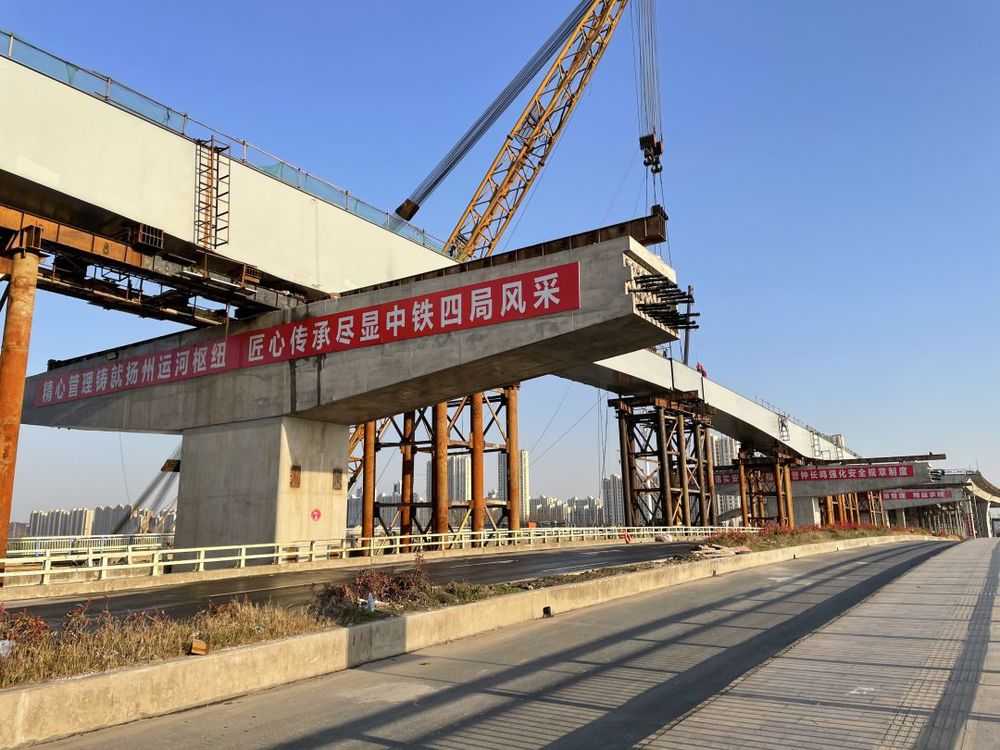 3月27日下午14點16分,運河南北路快速化改造二期工程(萬福西路-物港路北)項目跨古運河段夫差橋首聯(lián)鋼箱梁橫向頂推施工順利完成,標(biāo)志著工程取得了階段性勝利。