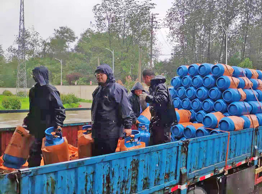 7月26日一大早,兩輛大卡車滿載著一千余只新鋼瓶,來到揚州中燃楊廟液化氣場站,全體工作人員與臺風(fēng)搶時間,面對狂風(fēng)、暴雨,把充裝臺場地清理出來擺放運達(dá)的一千余只新鋼瓶。同時,爭分奪秒灌裝、搶運鋼瓶保證配送,保障揚州市民穩(wěn)定用氣,讓揚州中燃液化氣鋼瓶走進千家萬戶,送去更方便、更快捷的服務(wù)。