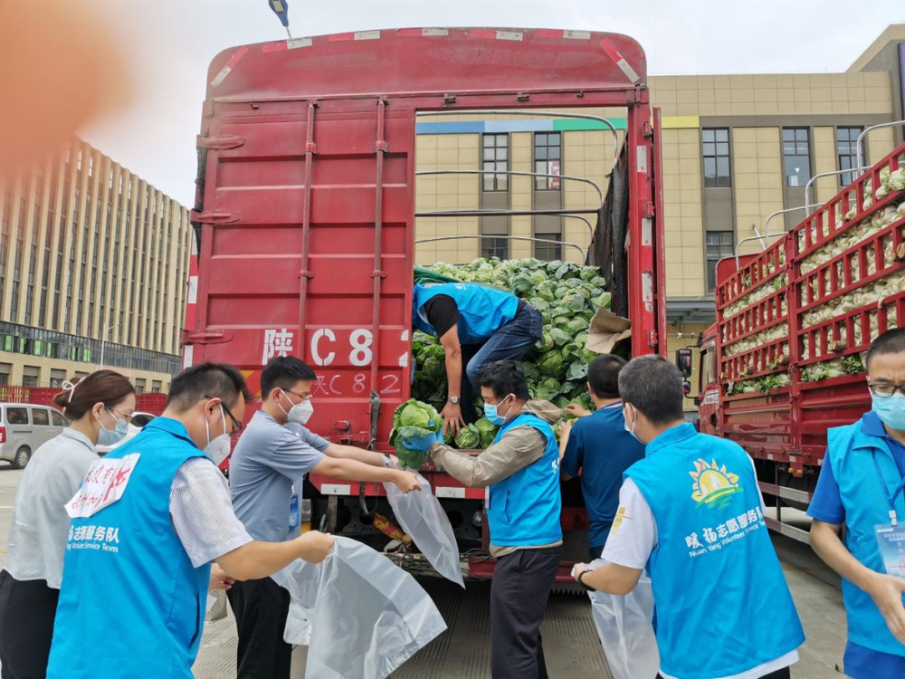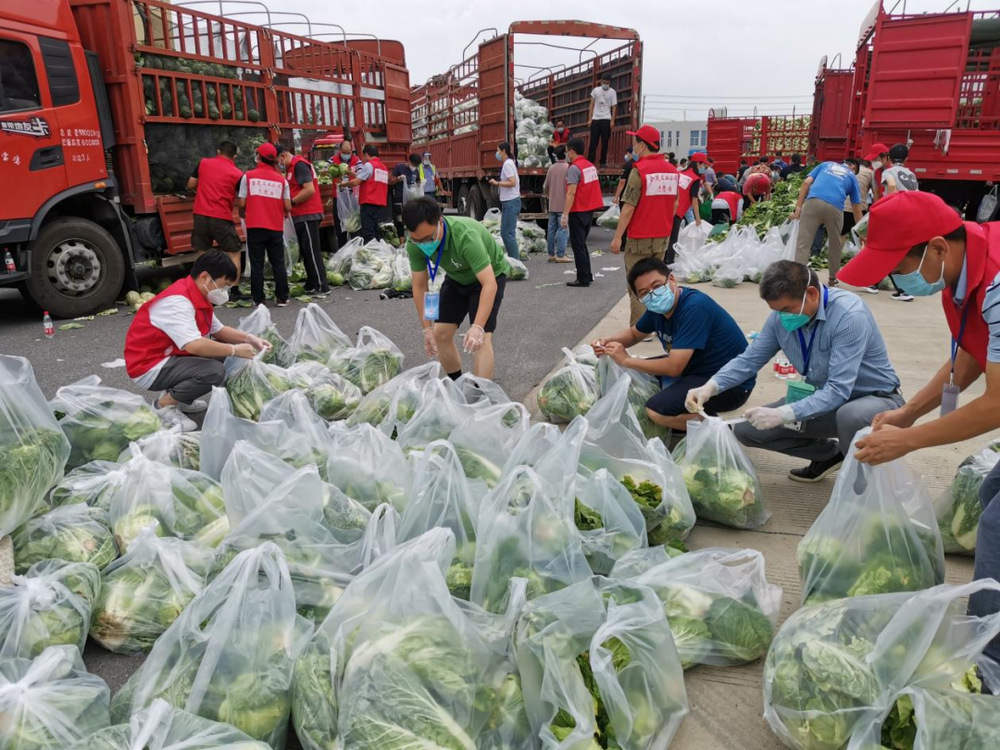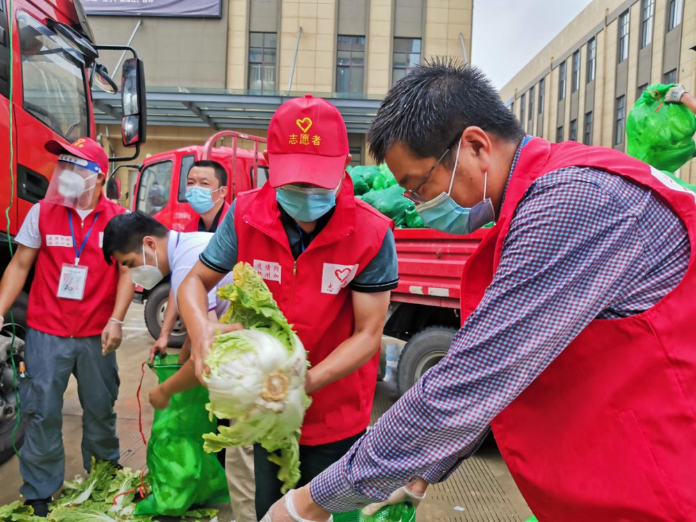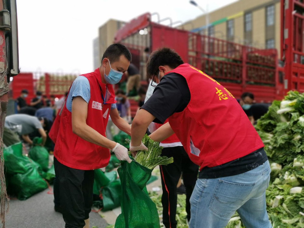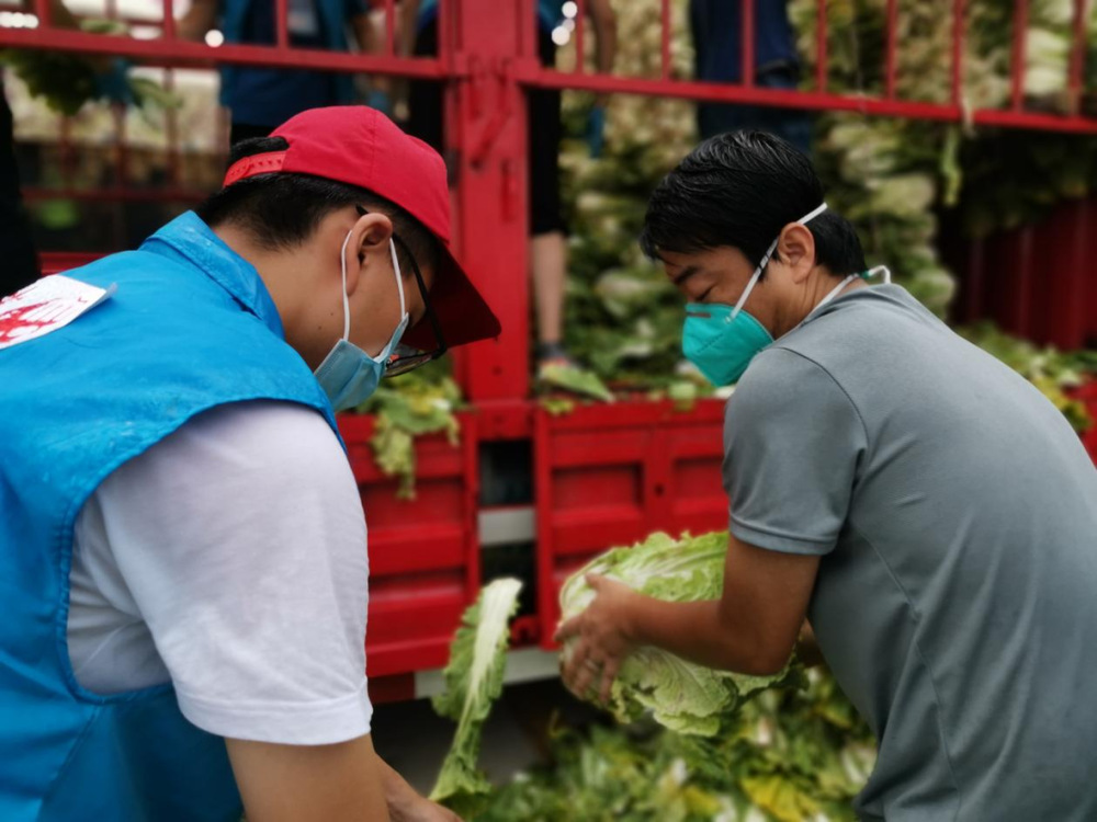 由于蔬菜數(shù)量龐大,為保障居民能夠及時(shí)拿到“愛(ài)心菜”,13:30,城控集團(tuán)又從各志愿服務(wù)小組緊急抽調(diào)50名志愿者奔赴萬(wàn)噸冷鏈進(jìn)行現(xiàn)場(chǎng)支援。