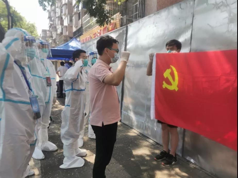 為更好地在抗疫一線發(fā)揮基層黨組織的戰(zhàn)斗力和黨員的先鋒模范作用,8月8日,第一批次出征高風(fēng)險地區(qū)——武塘社區(qū)的志愿服務(wù)先鋒部隊(duì)經(jīng)集團(tuán)黨委批準(zhǔn),率先成立了抗疫志愿服務(wù)行動臨時黨支部,讓黨旗第一時間飄揚(yáng)在疫情防控第一線。