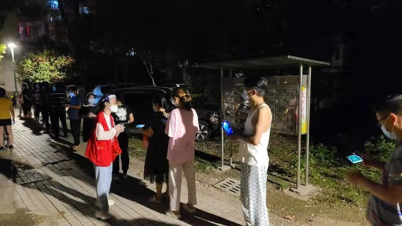 文昌花園、鴻泰家園、文康苑三個(gè)小區(qū)共計(jì)143棟,居住市民達(dá)10000余人。面對(duì)小區(qū)人員構(gòu)成復(fù)雜、核酸檢測(cè)易造成混亂等問(wèn)題,志愿者們克服困難,采取有效措施,保障核酸檢測(cè)工作有序進(jìn)行。一是因地制宜,揚(yáng)州中燃公司和城建置業(yè)公司的黨員志愿者組建黨員先鋒隊(duì),排定各樓棟?rùn)z測(cè)時(shí)間節(jié)點(diǎn),并以樓棟為單位制作了樓棟牌,每次由1名志愿者帶領(lǐng)各樓棟居民下樓列隊(duì),集中前往核酸檢測(cè)點(diǎn),逐個(gè)檢查蘇康碼、測(cè)量體溫并按戶進(jìn)行登記,保障了核酸檢測(cè)現(xiàn)場(chǎng)有條不紊;二是因事制宜,8月14日,由于小區(qū)“轉(zhuǎn)黃碼”居民急劇增多,志愿者們?cè)绯?點(diǎn)鐘就到達(dá)核酸檢測(cè)點(diǎn),進(jìn)行場(chǎng)地布置、更換擋棚、區(qū)域消毒等準(zhǔn)備工作,檢測(cè)時(shí)將“綠碼”“黃碼”居民認(rèn)真鑒別、分類準(zhǔn)確;三是因情制宜,在醫(yī)護(hù)人員緊缺的情況下,應(yīng)社區(qū)請(qǐng)求,姚江和王志明兩名同志主動(dòng)請(qǐng)纓,在經(jīng)過(guò)專業(yè)醫(yī)護(hù)人員指導(dǎo)后,帶頭承擔(dān)了高強(qiáng)度、高壓力的咽拭子登記工作。