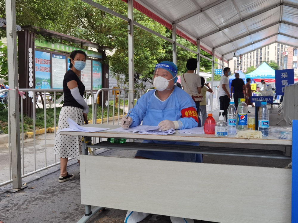 置業(yè)公司張軍,在瘦西湖街道濱湖社區(qū),24小時在崗值守,查看小區(qū)出入人員健康碼和通行證,并組織核酸檢測和志愿者服務(wù)工作。