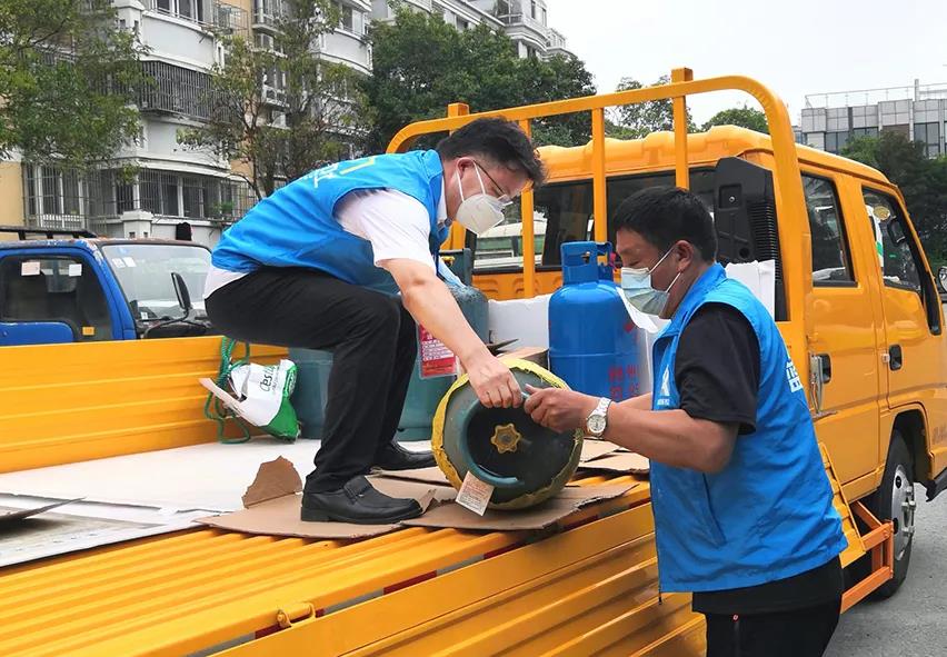 “社區(qū)不少居民的鋼瓶液化氣用完了,無法做飯,居民不能外出充氣,能不能想辦法解決這個(gè)難題……”8月22日早晨,社區(qū)網(wǎng)格員找到揚(yáng)州中燃志愿者蔡建尋求幫助,共有12戶居民急需充裝15公斤瓶裝液化氣。蔡建隨即聯(lián)系揚(yáng)州信達(dá)能源公司了解情況,得知立新路充裝點(diǎn)要到第二天才能提貨,到楊廟中燃液化氣場站可以隨到隨充。“液化氣屬于危險(xiǎn)品,搬運(yùn)、充裝、運(yùn)輸必須做到安全第一”,季紅軍叮囑出發(fā)前的蔡建和嵇兵。兩人用中燃公司備用卡車,在社區(qū)三個(gè)點(diǎn)收齊12只空鋼瓶后,用尼龍繩分別串聯(lián)緊固,保持勻速驅(qū)車前往楊廟充裝站點(diǎn)。中午12時(shí)許,運(yùn)送車輛在楊廟充裝完畢后,安全返回文昌花園。