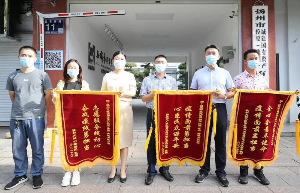 9月13日,廣陵區(qū)曲江街道人武部部長孫君,曲江新苑社區(qū)黨總支書記、主任韋娜一行,帶著錦旗專程來到城控集團,代表社區(qū)和轄區(qū)內(nèi)全體居民,感謝城控集團在疫情期間對社區(qū)疫情防控工作的支持和幫助,并對城控集團抗疫志愿者們兢兢業(yè)業(yè)、無私奉獻的工作態(tài)度連連點贊。