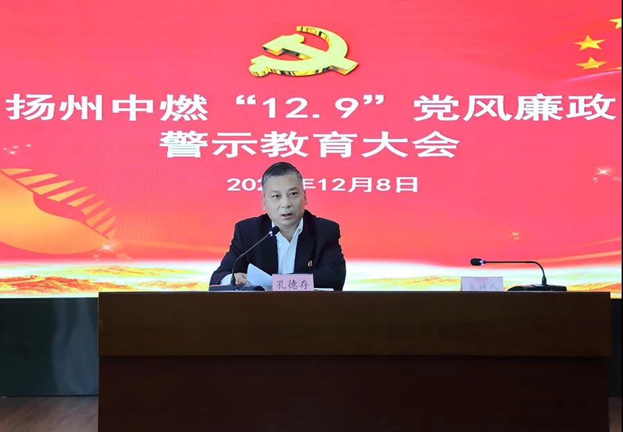 為進(jìn)一步貫徹落實(shí)全面從嚴(yán)治黨方針,強(qiáng)化黨員干部的廉潔自律意識(shí),推動(dòng)黨風(fēng)廉政建設(shè)向縱深發(fā)展,12月8日下午,揚(yáng)州中燃公司召開(kāi)黨風(fēng)廉政警示教育專(zhuān)題大會(huì)。公司領(lǐng)導(dǎo)班子全體成員、中層干部及關(guān)鍵崗位人員參加會(huì)議。