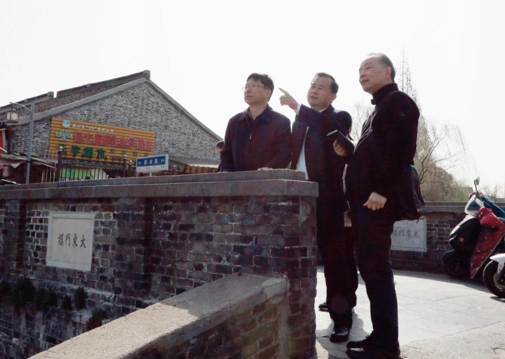 3月5日,中國(guó)工程院院士,東南大學(xué)教授、博士生導(dǎo)師,東南大學(xué)城市設(shè)計(jì)研究所所長(zhǎng)王建國(guó),東南大學(xué)教授、博士生導(dǎo)師陳薇一行來?yè)P(yáng)考察古城保護(hù)和城市更新工作。揚(yáng)州市政府副秘書長(zhǎng)林寶榮,城控集團(tuán)黨委書記、董事長(zhǎng)葉善祥陪同考察。