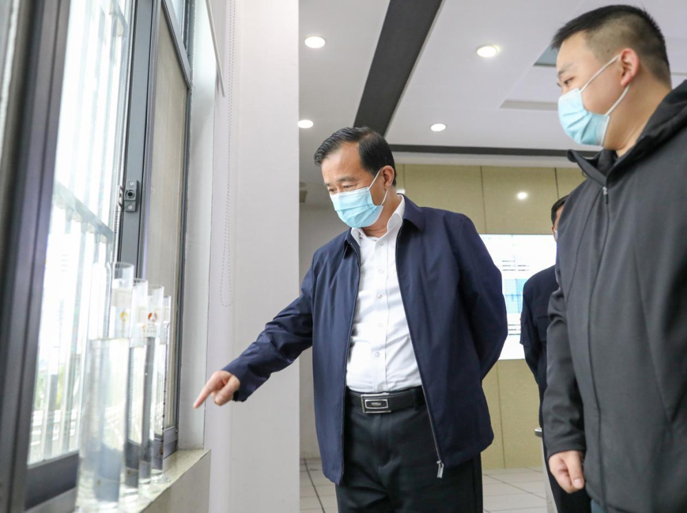 在第一水廠,葉善祥對節(jié)日期間生產(chǎn)保供、水質(zhì)達(dá)標(biāo),疫情防控和值班值守情況進(jìn)一步明確了要求。