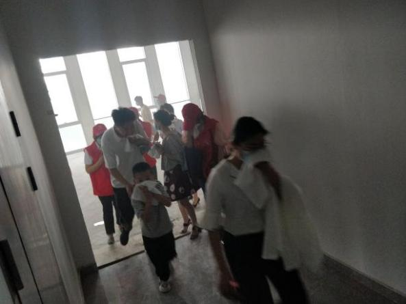 “快!快!快!”,樓層安全員引導(dǎo)著被困人員,通過消防樓梯迅速撤離。此時外圍與各出入口已拉起警戒線,禁止與滅火救援無關(guān)人員、車輛進(jìn)入大廈或危險區(qū)域,工作人員對大廈所有外圍區(qū)域進(jìn)行嚴(yán)管,確保消防通道的暢通,同時將被困人員指引至內(nèi)街廣場安全地帶。