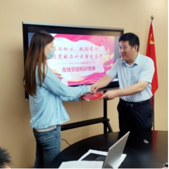 會議最后組織開展了“廉潤初心,砥礪前行,喜迎黨的二十大勝利召開”暨2022年黨風(fēng)廉政建設(shè)在線答題知識競賽活動,活動自7月8日起,本著“學(xué)、練、賽”相結(jié)合的原則,在“我的揚州APP”設(shè)置了每日答題練習(xí)。正式比賽開始后,各位參賽選手立刻進入狀態(tài),集中精神、認(rèn)真答題。經(jīng)過激烈的角逐,支部書記為獲獎選手頒發(fā)榮譽證書。