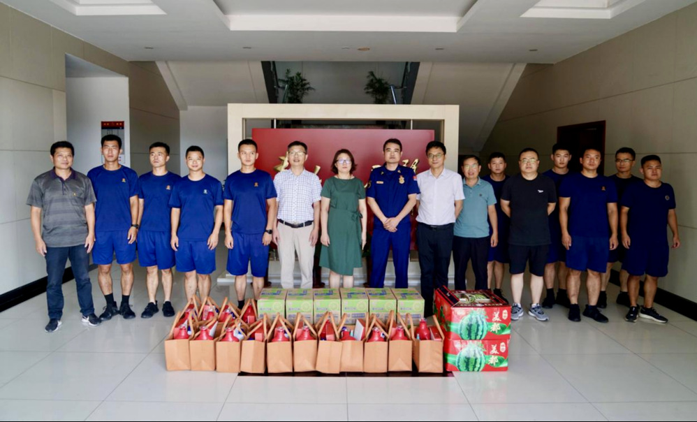 公司一行親切地慰問了消防隊(duì)員,參觀了消防隊(duì)員的訓(xùn)練場(chǎng)地,了解隊(duì)員們的日常訓(xùn)練及消防設(shè)施設(shè)備等運(yùn)行情況,認(rèn)真學(xué)習(xí)了在事故預(yù)防、隱患排查、搶險(xiǎn)救援等方面的優(yōu)良經(jīng)驗(yàn)。消防隊(duì)員感謝大家對(duì)消防救援工作的關(guān)心和支持。保護(hù)人民群眾生命財(cái)產(chǎn)安全是消防救援隊(duì)伍的神圣職責(zé),他們一定不負(fù)人民重托,戰(zhàn)高溫、斗酷暑,始終奮戰(zhàn)在搶險(xiǎn)救援第一線,為群眾安居樂業(yè)保駕護(hù)航。
