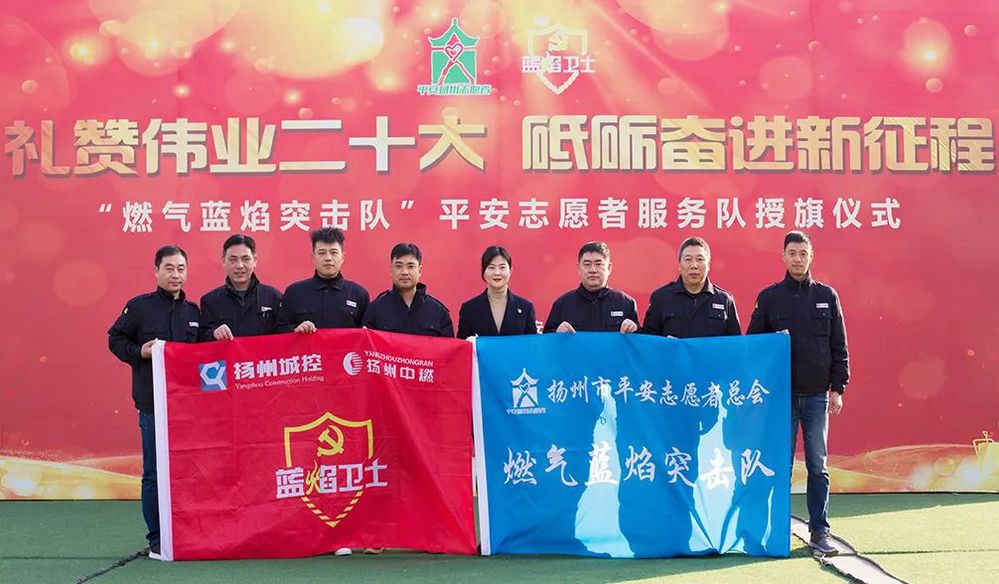 為貫徹黨的二十大精神,筑牢燃氣安全防線,為建設(shè)平安揚州夯實基礎(chǔ),12月15日,揚州市平安志愿者總會、揚州中燃公司在邗上街道武塘社區(qū)中心廣場,共同組織開展“禮贊偉業(yè)二十大、砥礪奮進新征程”平安志愿服務(wù)活動暨“燃氣藍焰突擊隊”授旗儀式。揚州市公安局二級高級警長、揚州平安志愿者總會副會長俞洪出席活動,為“燃氣藍焰突擊隊”平安志愿服務(wù)隊授旗。揚州中燃公司黨委書記、董事長,燃氣安檢員代表參加活動。