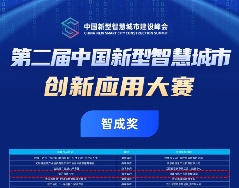 近日,中國(guó)新型智慧城市建設(shè)峰會(huì)在線上順利召開(kāi),本次峰會(huì)由國(guó)家信息中心、青島市人民政府、山東省大數(shù)據(jù)局聯(lián)合主辦。會(huì)上公布了峰會(huì)配套創(chuàng)新應(yīng)用大賽獲獎(jiǎng)結(jié)果,本屆大賽聚焦行業(yè)領(lǐng)域突出應(yīng)用成效和創(chuàng)新建設(shè)理念,設(shè)置了行業(yè)賽道和創(chuàng)新賽道。由揚(yáng)州城控集團(tuán)市民卡公司申報(bào)的“我的揚(yáng)州APP”從全國(guó)18省50市的1000余個(gè)優(yōu)秀項(xiàng)目中脫穎而出,榮獲“智成獎(jiǎng)”。