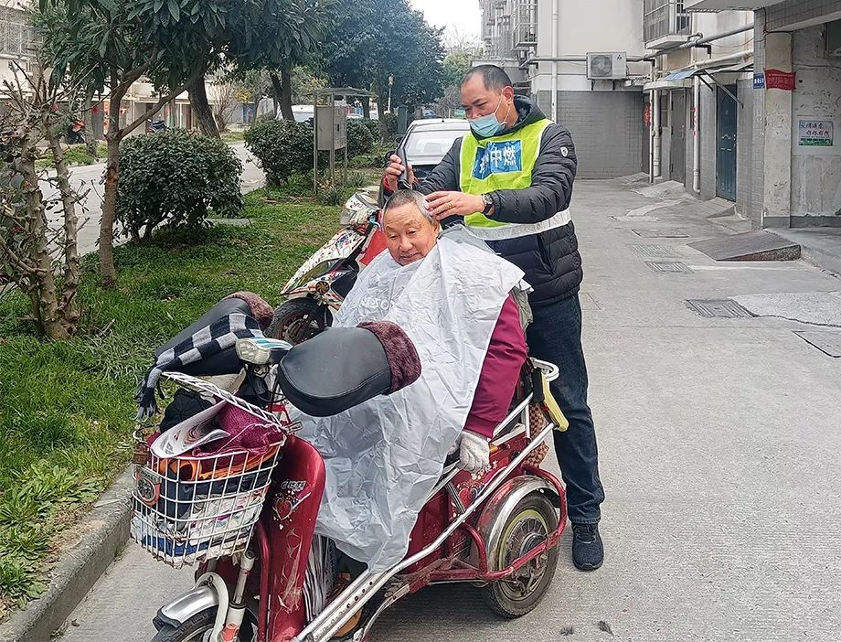 “我趕上好時(shí)候了,有中燃公司和社區(qū)的關(guān)懷,感到非常滿足”。許鴻林老人行動(dòng)不便,是“藍(lán)焰老兵”結(jié)對(duì)幫扶對(duì)象。志愿者單成林邊理發(fā)邊與許老聊天,并按照他提出的要求認(rèn)真細(xì)致地修剪,不一會(huì)兒,老人之前凌亂的頭發(fā)變得干凈整齊,許老臉上露出幸福的笑容。