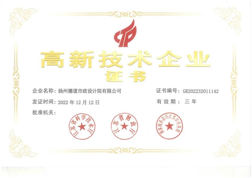 在集團(tuán)總師辦、財務(wù)部等職能部門的精心指導(dǎo)下,在公用控股各部門的通力合作下,公用控股子公司德道市政設(shè)計院于近日一舉通過國家高新技術(shù)企業(yè)認(rèn)定,喜獲證書。該證書的獲得,充分肯定了德道市政設(shè)計院一直以來在科技研發(fā)、持續(xù)創(chuàng)新等方面的努力成果。