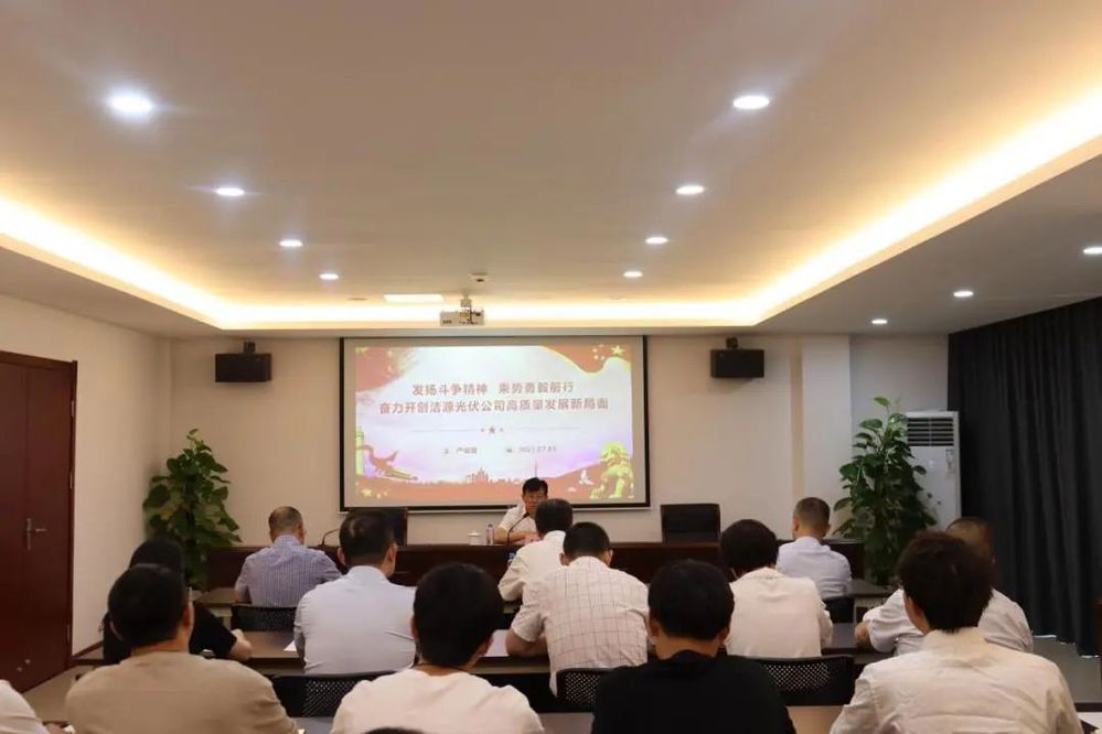 會上,嚴俊泉以《發(fā)揚斗爭精神、乘勢勇毅前行,奮力開創(chuàng)潔源光伏公司高質(zhì)量發(fā)展新局面》為題,從“深刻認識斗爭精神的豐富內(nèi)涵”“準確把握新時代斗爭精神的特點要求”“堅持發(fā)揚斗爭精神的路徑方法”三個方面闡述了斗爭精神的時代特征和實踐要求,分析了“雙碳”目標背景下新能源發(fā)電產(chǎn)業(yè)的斗爭形勢,并對潔源光伏公司下一步工作提出了具體要求。