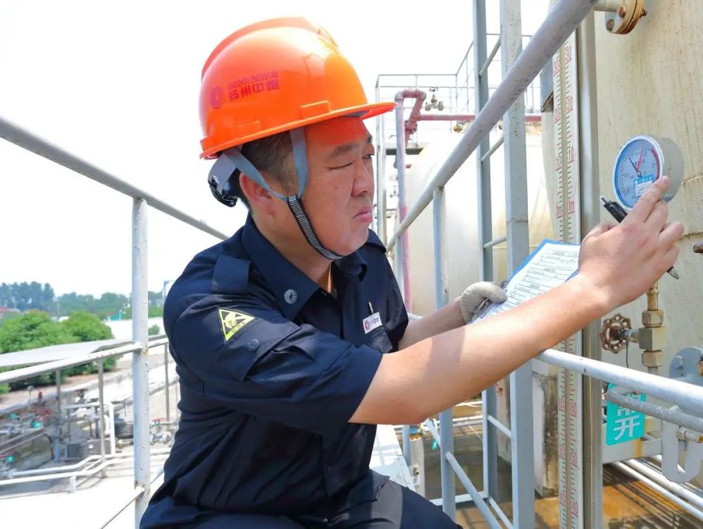 他及時收看天氣預報,夏季在觀察到氣溫超過警戒線后,他迅速組織開展噴淋作業(yè),對儲液罐罐體進行降溫,確保設備安全穩(wěn)定運行。當冬季降溫前,他對場站罐區(qū)進行仔細巡查,對排污閥進行排污作業(yè),防止出現(xiàn)閥門凍裂等安全隱患。