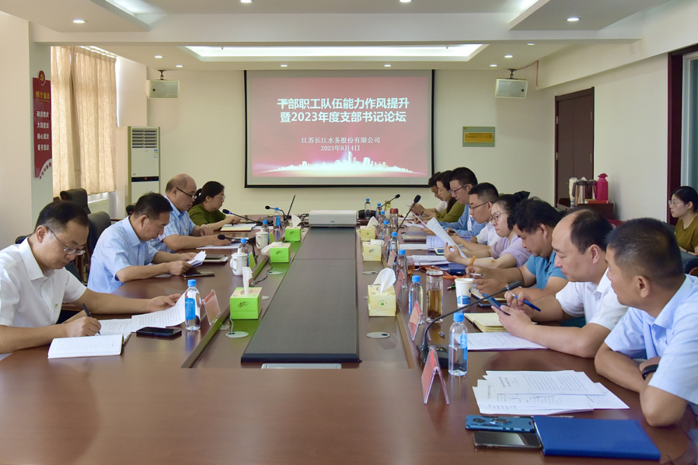 8月4日上午,長江水務召開干部職工隊伍能力作風提升暨2023年支部書記論壇。城控集團黨委委員、長江水務公司黨委書記、董事長張正斌,長江水務黨委委員、紀委書記、工會主席陳駿出席會議,各支部書記、黨群工作處、人力資源處部門負責人參加會議。