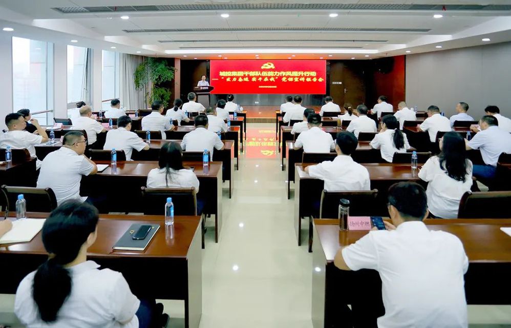 為進(jìn)一步推動習(xí)近平新時代中國特色社會主義思想深入基層、深入人心,切實提升集團(tuán)干部隊伍能力作風(fēng)建設(shè),激勵廣大干部職工攻堅克難、勇毅前行,以更加昂揚的姿態(tài)奮進(jìn)新征程、建功新時代,8月22日下午,集團(tuán)在國泰大廈舉辦第四場“發(fā)力奮進(jìn) 實干在我”黨課宣講報告會。集團(tuán)黨委副書記徐飛、集團(tuán)黨群部負(fù)責(zé)人,運河城建公司、揚州中燃公司、供熱公司、資產(chǎn)公司、光伏公司領(lǐng)導(dǎo)班子成員和中層干部、黨員職工代表共計100余人參加活動。