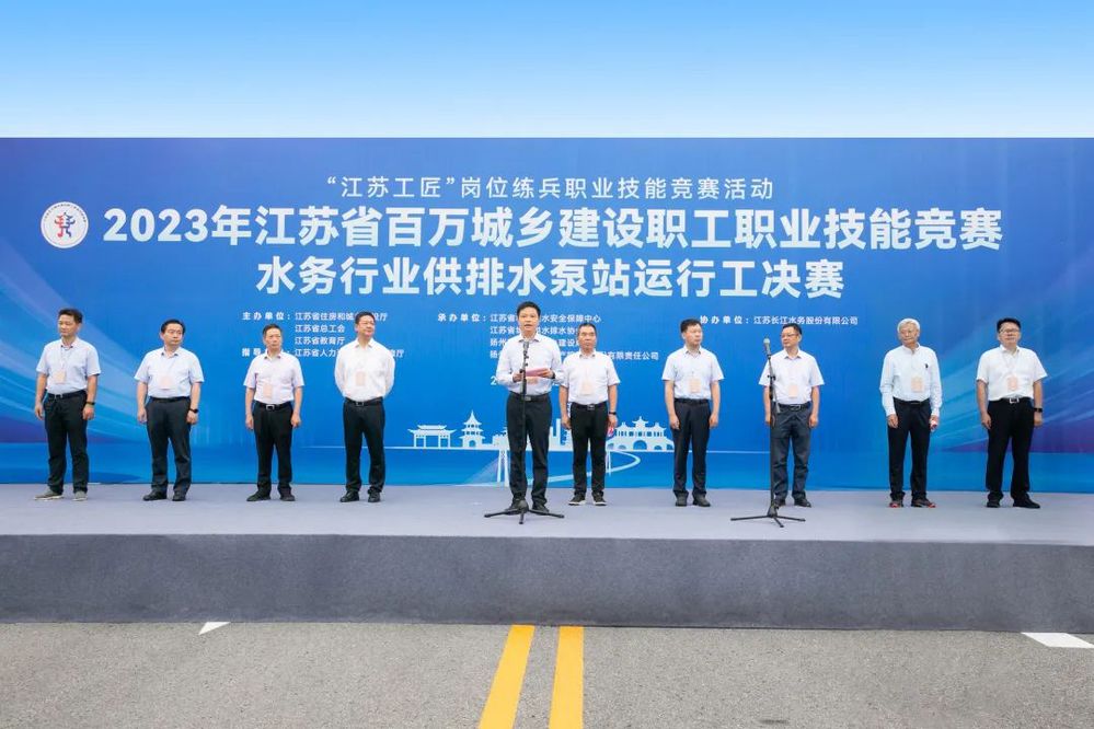 9月13日至14日,2023年江蘇省百萬城鄉(xiāng)建設(shè)職工職業(yè)技能競賽水務(wù)行業(yè)供排水泵站運行工決賽在揚州成功舉辦,城控集團(tuán)作為承辦單位,在長江水務(wù)第一水廠舉行競賽開幕式,省住房和城鄉(xiāng)建設(shè)廳城市建設(shè)處處長張躍峰出席開幕式并宣布比賽開幕,揚州城控集團(tuán)黨委書記、董事長張思忠,副總經(jīng)理周平出席開幕式。