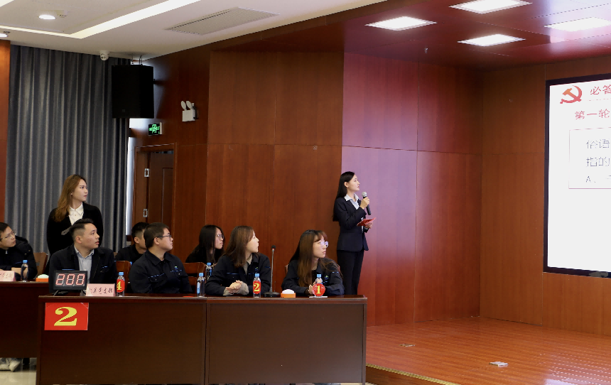 競賽知識以黨史、文史和新中國史為主要內(nèi)容,設(shè)置了必答、搶答、風(fēng)險和觀眾互動等多種題型。來自公司四個黨支部的參賽隊員精神飽滿、沉著應(yīng)答,在競賽過程中賽知識、比手速、拼腦力,展現(xiàn)出扎實的理論學(xué)習(xí)功底和豐富的知識儲備,大家踴躍競答、你追我趕,比分交替上升,搶答扣人心弦,整場競賽高潮迭起,引得現(xiàn)場觀眾掌聲連連。