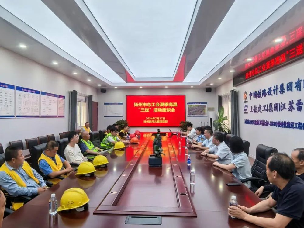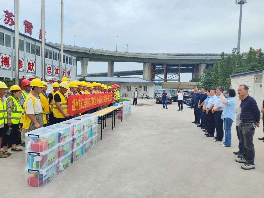7月17日,揚州市總工會副主席楊浩帶隊赴萬福路及運河北路(萬福大橋-S611)快速化建設工程(運河北路北延段)項目部開展夏季高溫“三送”慰問活動,城控集團副總經(jīng)理季紅軍、市應急局專員郜宇、建設工會主任范華參加活動。