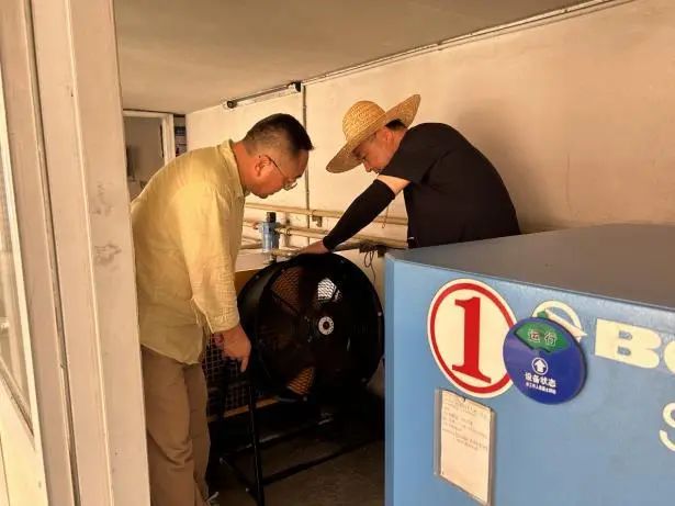 前幾日,湖西水廠生產(chǎn)班長譚寶龍?jiān)谌粘Q惨曔^程中發(fā)現(xiàn)沙濾池電房排風(fēng)扇電機(jī)故障,嚴(yán)酷的高溫使得電房宛如一個蒸籠,供電設(shè)備存在安全隱患。他利用休息時間,加班將排風(fēng)扇電機(jī)修好并用起來,為電氣設(shè)備防暑降溫,確保廠區(qū)超負(fù)荷運(yùn)行下的機(jī)械安全。