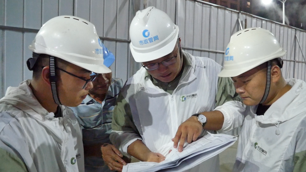 凌晨?jī)牲c(diǎn),城市進(jìn)入夢(mèng)鄉(xiāng),只剩蛙叫蟬鳴。邗江北路積水點(diǎn)施工現(xiàn)場(chǎng)依然一片火熱,管網(wǎng)運(yùn)營(yíng)二所熊永祺與工程建設(shè)處儲(chǔ)智毅、張和鵬三人正在討論著施工圖紙。為保證工程進(jìn)度,市政管網(wǎng)公司采取“干兩頭、歇中間”的工作方法,避開(kāi)中午高溫,夜間多趕工,保質(zhì)量,搶工期。工程建設(shè)處張和鵬介紹,今年,我市已經(jīng)啟動(dòng)了一系列針對(duì)城市易澇積水點(diǎn)的綜合整治工作,管網(wǎng)公司亦積極投身其中,改造并優(yōu)化相關(guān)積水點(diǎn)的管網(wǎng)系統(tǒng)與溝渠設(shè)施,從根本上解決積水問(wèn)題。