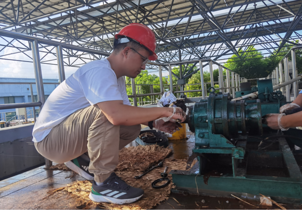 黃松文同志現(xiàn)為六圩廠廠長助理,他每天穿梭在廠區(qū)的各個工藝設(shè)備間,校驗數(shù)據(jù)、檢查線路、更換設(shè)施,接受著高溫曝曬的“烤”驗,背負著生產(chǎn)和維保的壓力,在自己崗位上,與時間賽跑,與高溫較量,以精湛的專業(yè)技能和不辭辛勞的敬業(yè)精神,為六圩污水處理廠穩(wěn)定運行默默貢獻著力量。