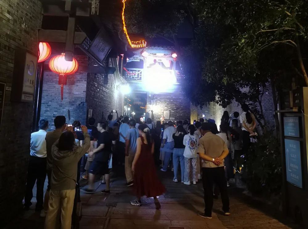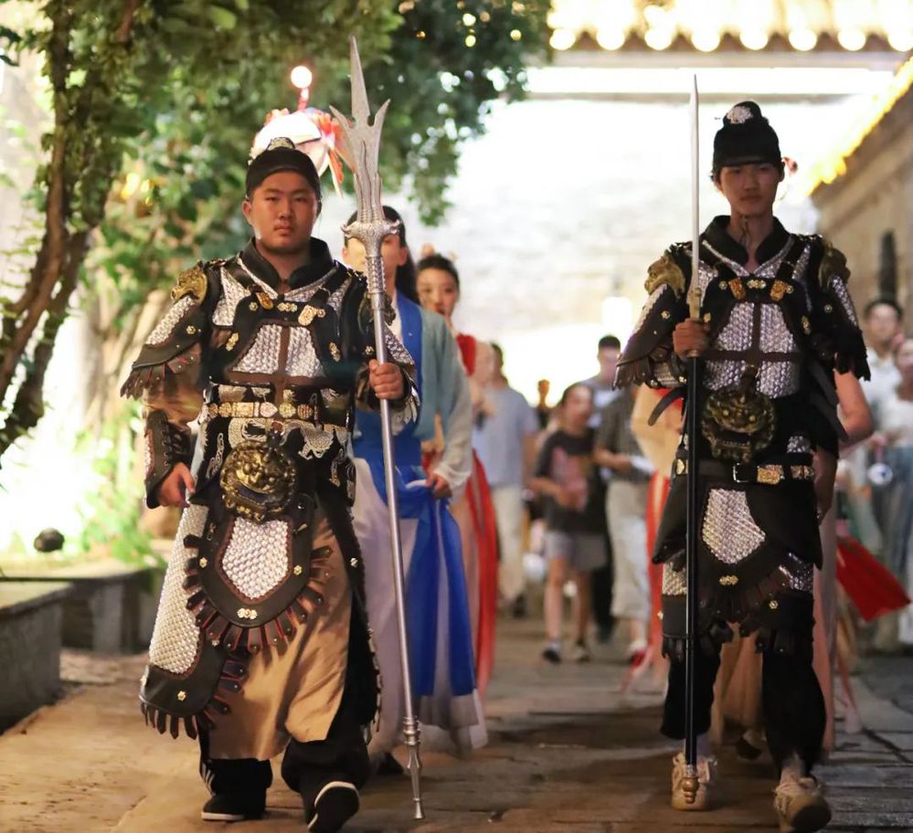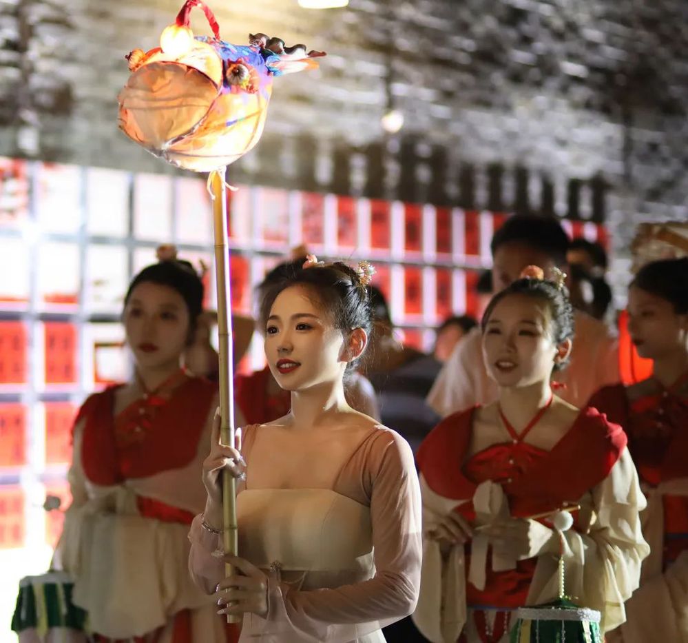 演繹人員手持魚燈等傳統(tǒng)道具,引領(lǐng)身穿漢服的嘉賓和游客由含藻亭-廊橋-街南書屋-東關(guān)街,進(jìn)行了一場(chǎng)穿越古今之旅——“魚燈巡游”,成功圈粉東關(guān)街眾多市民和游客。