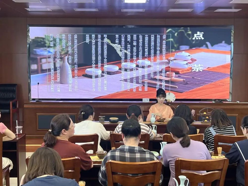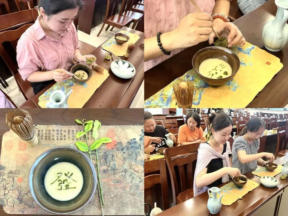 活動開始后,老師向大家介紹了宋代點茶的歷史背景,帶領(lǐng)大家了解宋人的點茶文化,接著邊講解邊示范了備水、碾茶、點茶、分茶的過程。職工們被點茶的獨特過程深深吸引,在老師的引導下,全身心投入到制作過程,大家平心靜氣,緩緩持起文雅的茶器,開始用心點茶,全神貫注感受宋韻文化的意境,看著沉浮云沫,聞著四溢茶香,須臾之間,仿佛重沐了宋代的清風朗月,沉浸其中,盡享歡愉。