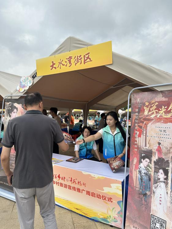 在活動(dòng)現(xiàn)場,街區(qū)通過精美的展板和彩頁展示了唐朝詭事錄·西行”國潮沉浸劇場、“浮光機(jī)關(guān)劇場”及“對影古風(fēng)酒館”等街區(qū)新開發(fā)的文旅新場景項(xiàng)目,也宣傳推介了包括淮揚(yáng)菜博物館、鹽宗廟、精品淮揚(yáng)菜餐飲等在內(nèi)的街區(qū)傳統(tǒng)項(xiàng)目。通過視頻、展板及工作人員的介紹,讓活動(dòng)參與者更加直觀地感受到了大水灣街區(qū)的魅力。