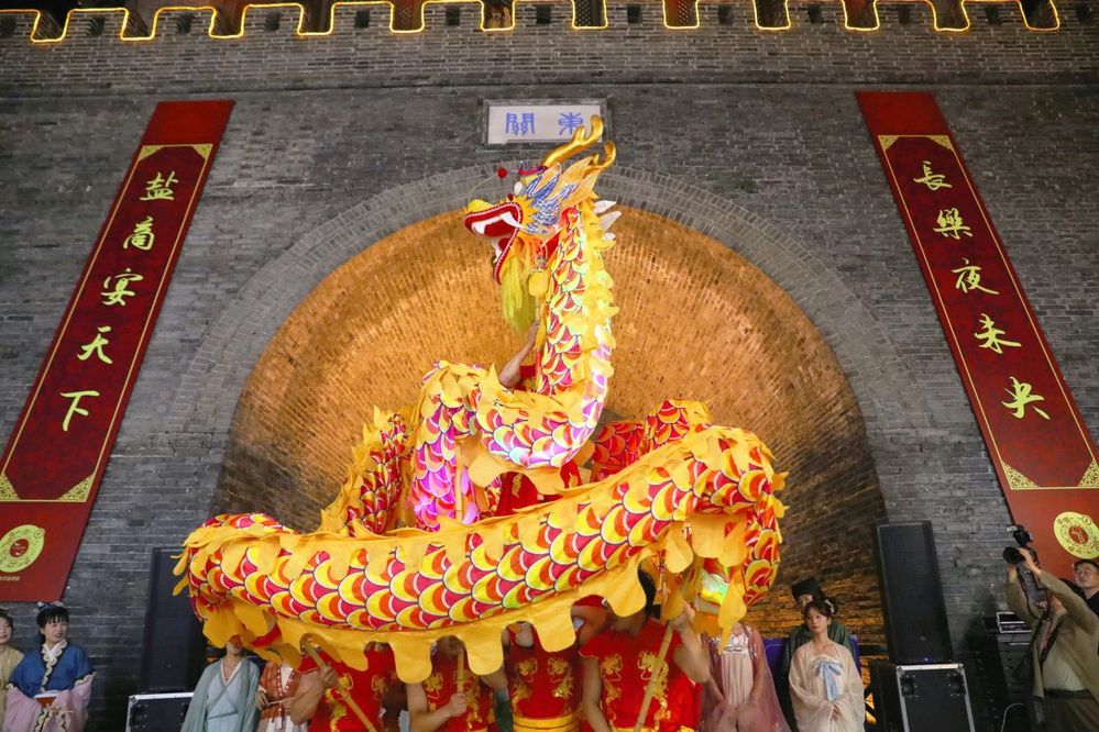 9月29日晚上的“迎國慶 共長樂”大型漢服巡游活動(dòng)將國慶氛圍拉滿!50余人的漢服巡游隊(duì)伍,從長樂客棧出發(fā),一路向東至東城門折返。游客和市民熱情高漲,紛紛拿起手機(jī),記錄精彩瞬間,在傳統(tǒng)舞龍表演中感受濃濃的節(jié)日氛圍。