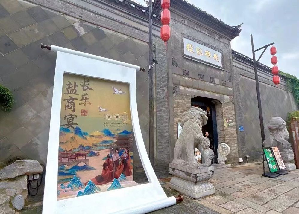 10月1日,揚(yáng)城首家集鹽商文化與美食文化于一體的沉浸式體驗(yàn)項(xiàng)目——“長樂鹽商宴”正式開門納客!為滿足客戶的消費(fèi)需求,從國慶假期開始,酒店正式將鹽商宴與包廂結(jié)合,通過現(xiàn)場歌舞演繹等形式,還原當(dāng)年鹽商馬曰琯、馬曰璐兄弟接待賓朋的場景??腿嗽谄穱L鹽商佳肴的同時(shí),可與“古人”來一場穿越時(shí)空的互動(dòng)。節(jié)日期間,“長樂鹽商宴”共開設(shè)21場,接待近千名游客和市民。