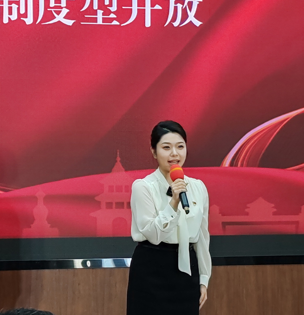 比賽分為“主題宣講”和“即興宣講”兩個(gè)環(huán)節(jié)?!爸黝}宣講”環(huán)節(jié),12名參賽選手圍繞“筑夢(mèng)現(xiàn)代化 共繪新圖景”主題進(jìn)行6分鐘宣講。陳皓雅以《“河”以揚(yáng)州》為題,緊緊圍繞大運(yùn)河原點(diǎn)城市建設(shè),講述了城控集團(tuán)牢記習(xí)近平總書記殷殷囑托,傳承與發(fā)展運(yùn)河文脈,積極融入大運(yùn)河文化帶建設(shè),致力于城市基礎(chǔ)設(shè)施更新、古城保護(hù)與活化利用、民生幸福工程建設(shè),展現(xiàn)了城控集團(tuán)與城市共生息,擘畫人河相融的城市高質(zhì)量發(fā)展藍(lán)圖的時(shí)代擔(dān)當(dāng)?!凹磁d宣講”環(huán)節(jié),陳皓雅圍繞“穩(wěn)步擴(kuò)大制度型開放”關(guān)鍵詞,結(jié)合黨的二十屆三中全會(huì)精神和城控集團(tuán)穩(wěn)步推進(jìn)國(guó)企深化改革進(jìn)行了2分鐘即興宣講。今年以來,城控集團(tuán)在市委、市政府的堅(jiān)強(qiáng)領(lǐng)導(dǎo)下,深入學(xué)習(xí)貫徹黨的二十屆三中全會(huì)精神,精心組織“我是黨課主講人”活動(dòng),持續(xù)強(qiáng)化黨建引領(lǐng),推動(dòng)黨建工作與生產(chǎn)經(jīng)營(yíng)同頻共振,以高質(zhì)量黨建護(hù)航企業(yè)高質(zhì)量發(fā)展。
