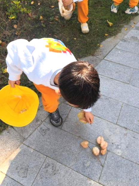 活動開始,孩子們在老師的陪伴下興奮地穿梭于園區(qū)小道,收集著各式各樣的天然材料,如五彩斑斕的落葉、形態(tài)各異的樹枝,為接下來的手工創(chuàng)作積累了豐富的素材。