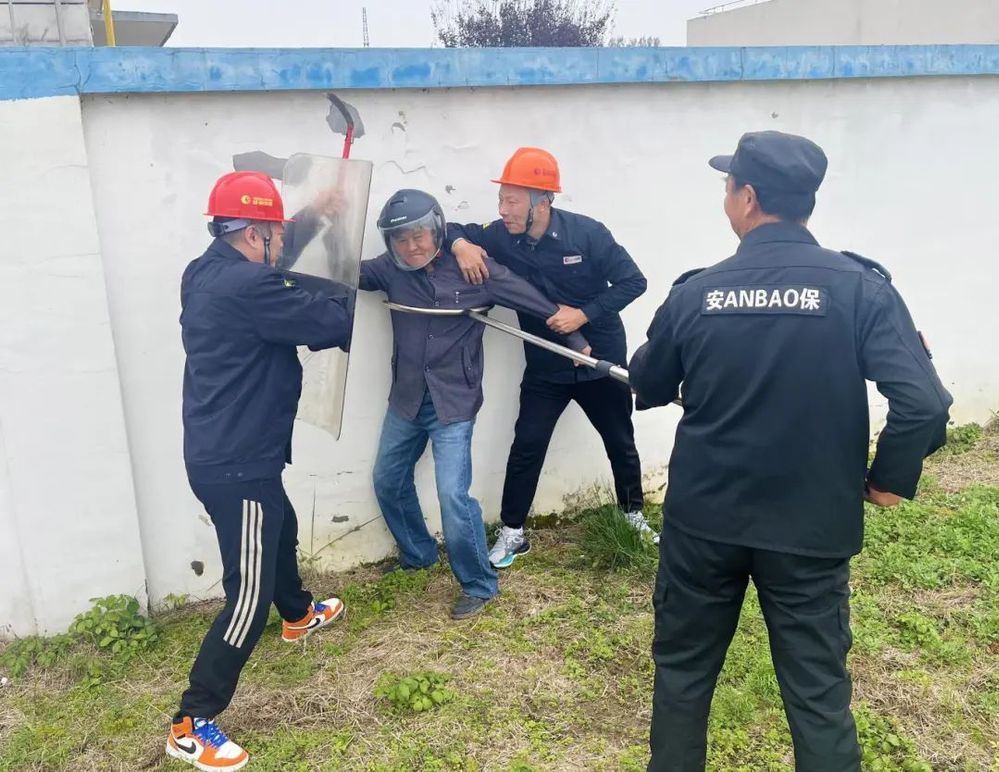 第二階段模擬恐怖分子持械進(jìn)入場(chǎng)站。門衛(wèi)在發(fā)現(xiàn)不明人員意圖進(jìn)入場(chǎng)站,按照反恐應(yīng)急處置流程,迅速電話報(bào)警,并組織人員,使用防暴器械,與門衛(wèi)人員一同制服該名恐怖分子,等待警方處置。