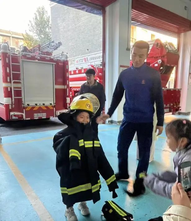 為了更具象化讓親子家庭了解各種消防器材設備,在消防隊員的帶領下,小朋友們親身體驗穿戴防護服、觀摩消防車等環(huán)節(jié),了解部分救援器材在滅火和救援任務中的用途,孩子們感受到消防員們的英勇與付出,興奮之情溢于言表。
