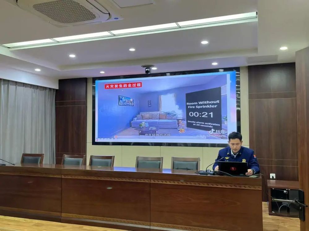 活動開始,李隊長以近幾年發(fā)生的多起消防安全事故為例,重點以家庭消防逃生及電瓶車充電為主要內容,用視頻講解的方式直觀展示了正確逃生方式及室內電瓶車充電的嚴重后果,提升了大家危險防范意識和避險能力。