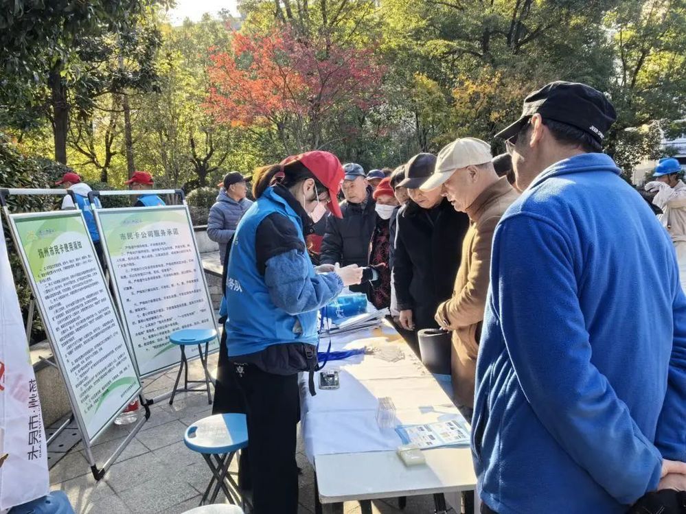 活動現(xiàn)場設(shè)立了多個服務(wù)臺,服務(wù)臺前都圍滿了前來咨詢和辦理業(yè)務(wù)的居民。市民卡公司的工作人員耐心解答居民關(guān)于市民卡功能、充值、掛失補辦等辦理事項,為居民提供市民卡保護殼以舊換新服務(wù)。中燃公司的工作人員向居民發(fā)放安全用氣宣傳手冊,詳細(xì)講解燃?xì)馐褂玫淖⒁馐马?,為居民提供免費的上門燃?xì)庠O(shè)備檢查服務(wù),保障居民的用氣安全。長江水務(wù)的工作人員為居民解答水費繳納、水質(zhì)檢測等疑惑,并向社區(qū)居民發(fā)放包裹水管的泡沫隔熱墊,幫助做好水管的保溫,并現(xiàn)場安排人員為居民測試水壓,維修自來水管。供熱公司的工作人員們向居民發(fā)放安全知識手冊和宣傳生活垃圾分類常識,名城公司的志愿者向居民免費提供切干絲服務(wù)。