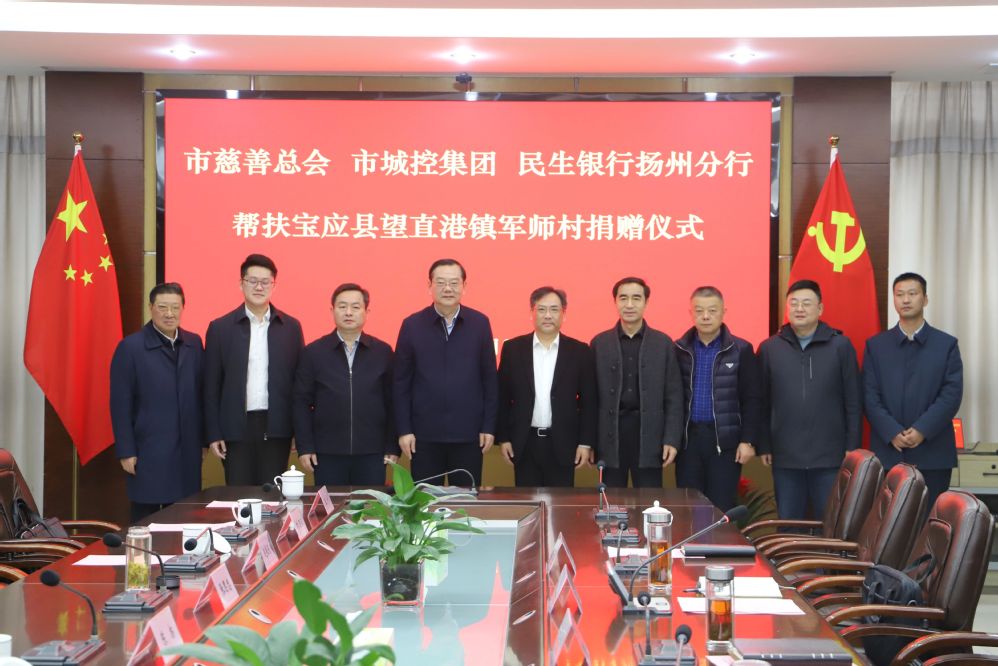 市政協(xié)主席、市慈善總會會長陳揚,集團(tuán)黨委書記、董事長張思忠,民生銀行揚州分行黨委書記、行長杜楊坤,市慈善總會副會長趙振東,寶應(yīng)縣委書記張小輝,寶應(yīng)縣人大常委會主任、慈善總會會長陳金榮等出席捐贈儀式。