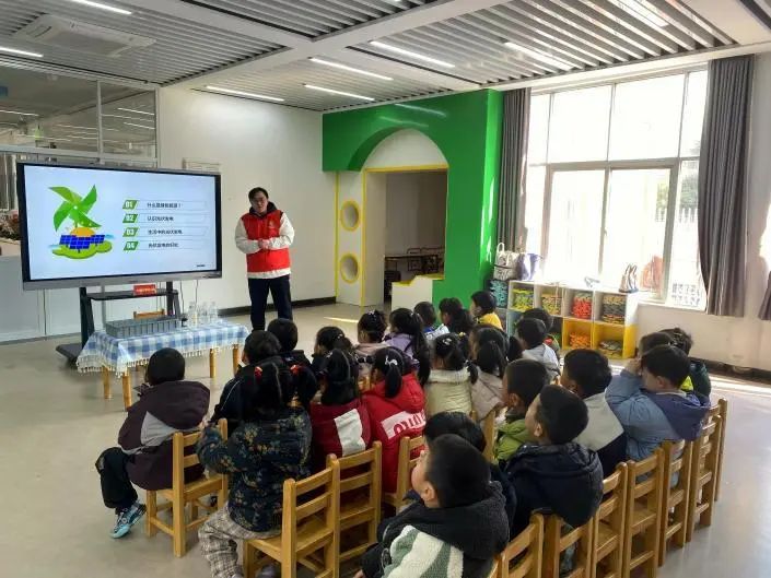 活動現(xiàn)場,志愿者們化身“環(huán)保導(dǎo)師”,結(jié)合幼兒認(rèn)知特點設(shè)計了科普課堂,通過趣味科學(xué)小實驗、生動的動畫視頻和PPT展示,以通俗易懂的語言向小朋友們講解了水循環(huán)的基本概念,帶領(lǐng)小朋友們見證了污泥發(fā)電、光伏發(fā)電以及資源循環(huán)利用的過程。