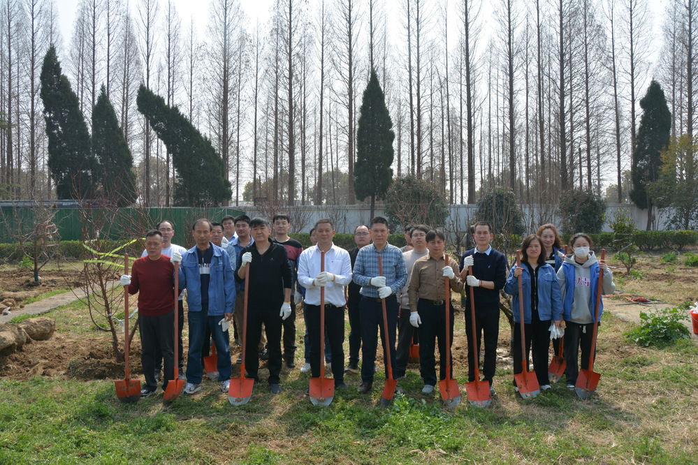上午10時,公司西大院內(nèi)氣氛熱烈,大家三五人一組,扶苗、培土、澆水……各個環(huán)節(jié)井然有序,配合默契。經(jīng)過一上午的辛勤勞動,30余株新栽下的樹苗迎風(fēng)挺立,呈現(xiàn)勃勃生機(jī)。