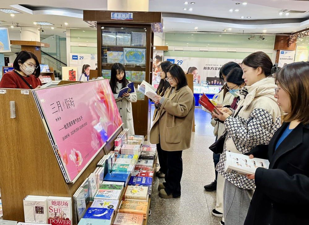 女職工們來到新華書店,在三月女性專欄閱讀了《職場幸福力》《陽光心態(tài)》等相關(guān)書籍,沉浸其中,閱讀后大家相互分享閱讀經(jīng)驗(yàn),交流心得感悟。并集中觀看了巾幗榜樣人物的偉大事跡,她們用奮斗寫下屬于這個(gè)時(shí)代的巾幗榮光,向“她”力量致敬。