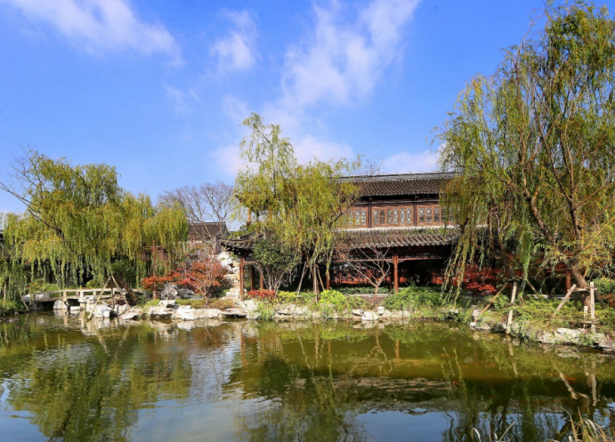 這座浸透鹽霜的宅院,枕著古運(yùn)河的千年濤聲,在煙花三月里舒展著它最溫柔的眉眼。雕花槅扇濾進(jìn)來(lái)的風(fēng)帶著瓊花的清芬,天井里的紫藤正沿著老磚墻攀爬,在廊檐下織出半面流動(dòng)的紫瀑布??头棵弧皞€(gè)園春曉”,推窗便能望見(jiàn)個(gè)園的竹影婆娑,案頭擺著青花瓷瓶,斜插著幾枝帶露的垂絲海棠。